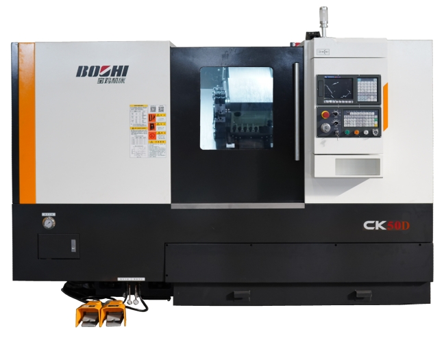 CK40D/CK50D是一款配置國產電主軸的實用型數控車床,采用高強度鑄鐵鑄造、床身底座整體式結構、傾斜導軌,主軸軸承及進給絲杠專用軸承傳動噪音低;配備國產多工位轉塔刀架,就近換刀。機床可配置日本FANUC 0i-TF(5)、西門子828D等數控系統(tǒng),也可選配國內外其它品牌高性價比數控系統(tǒng)。